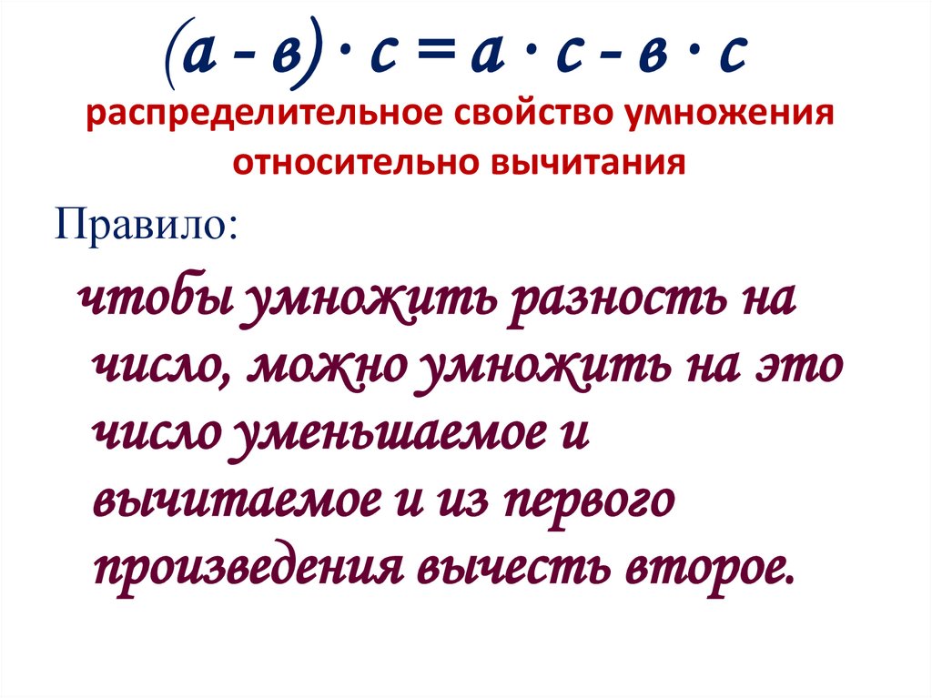 (а - в) ∙ с = а ∙ с - в ∙ сраспределительное свойство умножения