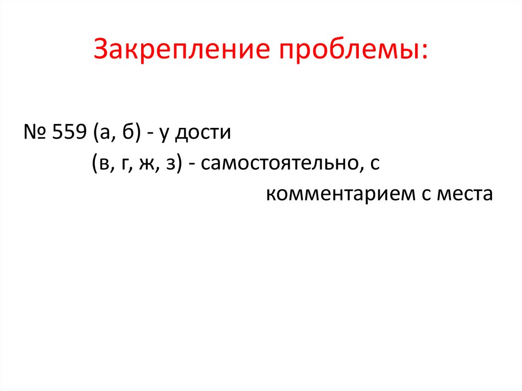 Закрепление проблемы:№ 559 (а, б) - у дости