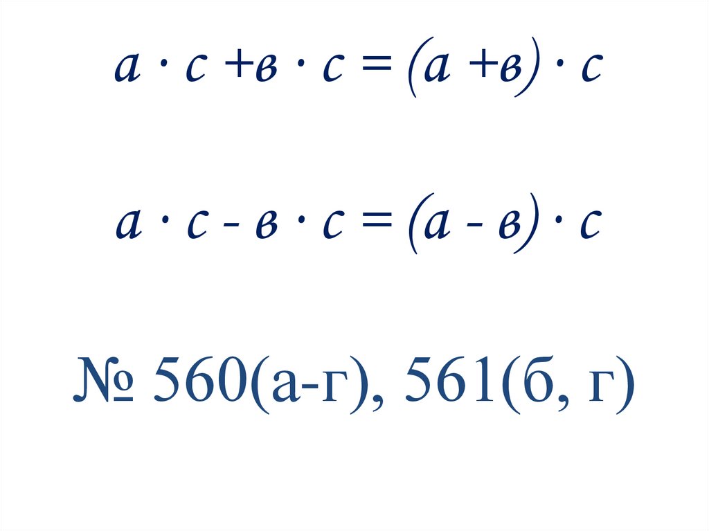 а ∙ с +в ∙ с = (а +в) ∙ са ∙ с - в ∙ с = (а - в) ∙ с