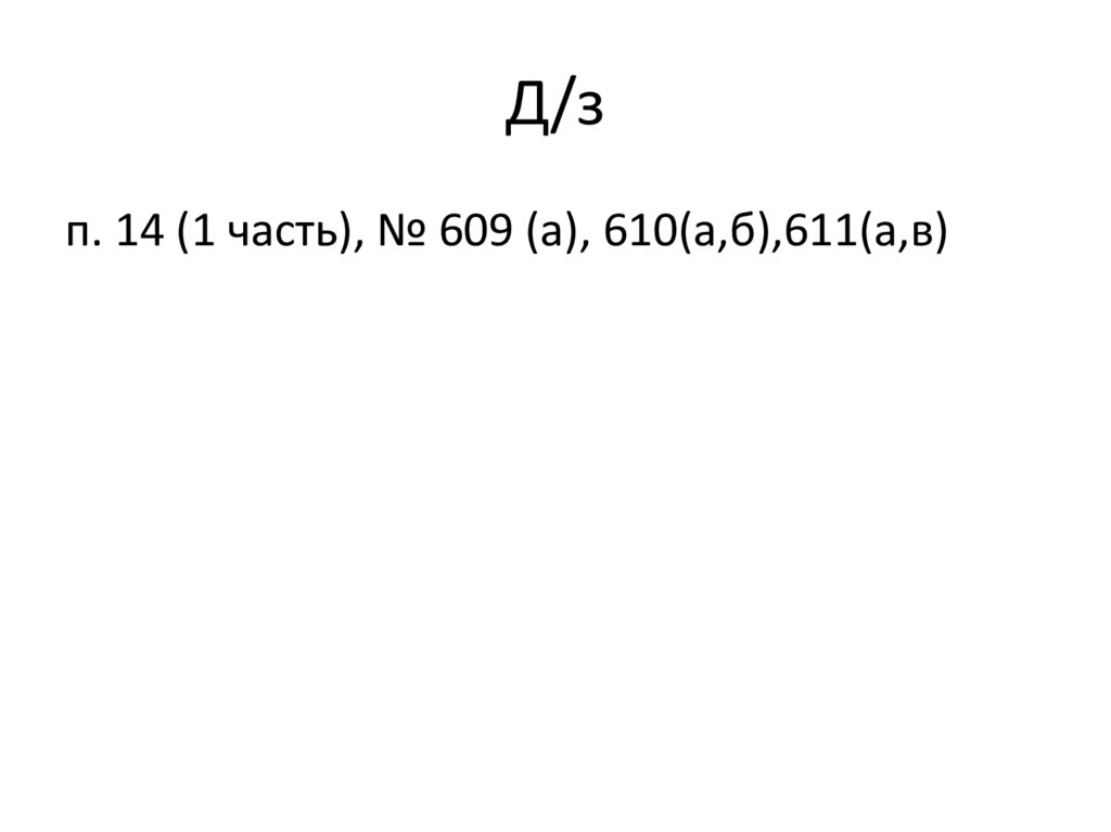Д/зп. 14 (1 часть), № 609 (а), 610(а,б),611(а,в)