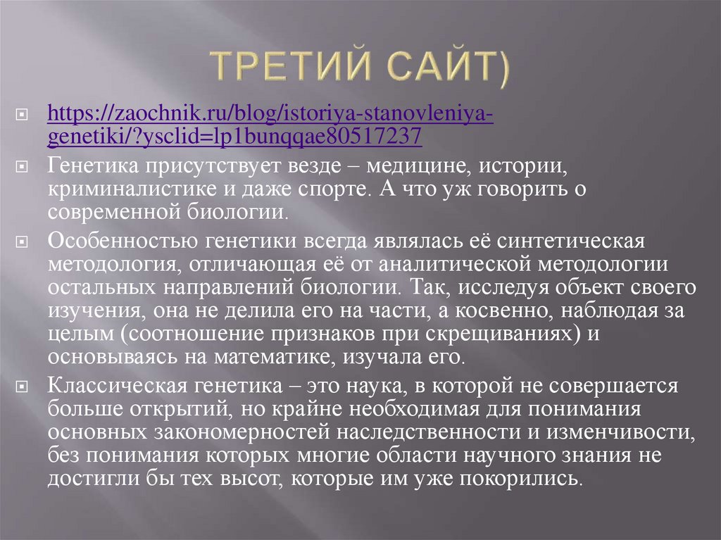 https://zaochnik.ru/blog/istoriya-stanovleniyagenetiki/?ysclid=lp1bunqqae80517237Генетика присутствует везде – медицине, истории,