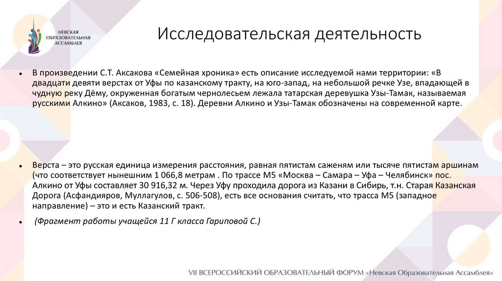 Исследовательская деятельностьВ произведении С.Т. Аксакова «Семейная хроника» есть описание исследуемой нами территории: «В