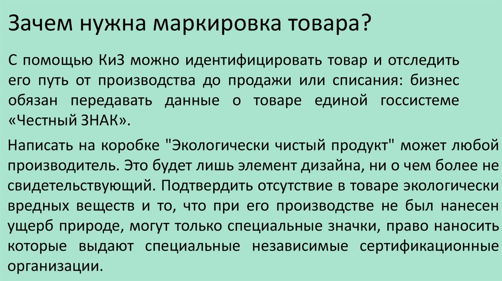 Зачем нужна маркировка товара?С помощью КиЗ можно идентифицировать товар и отследить
