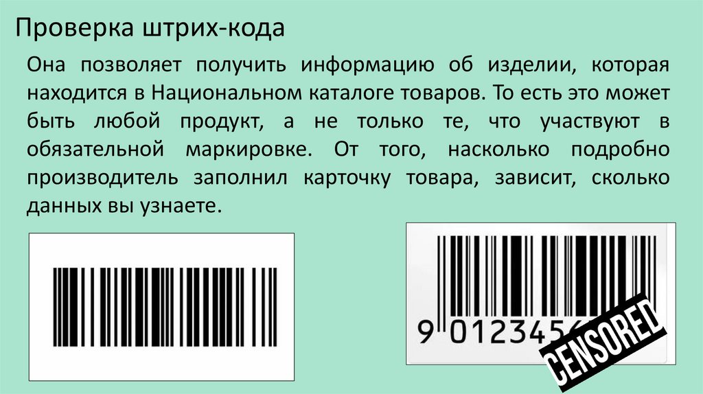 Проверка штрих-кодаОна позволяет получить информацию об изделии, которая