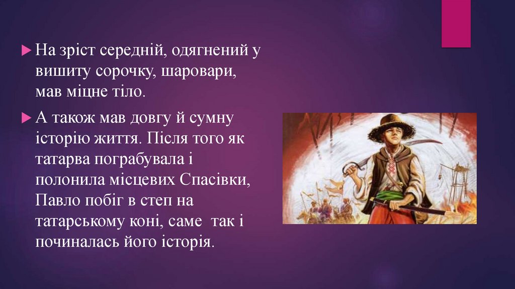 На зріст середній, одягнений увишиту сорочку, шаровари,