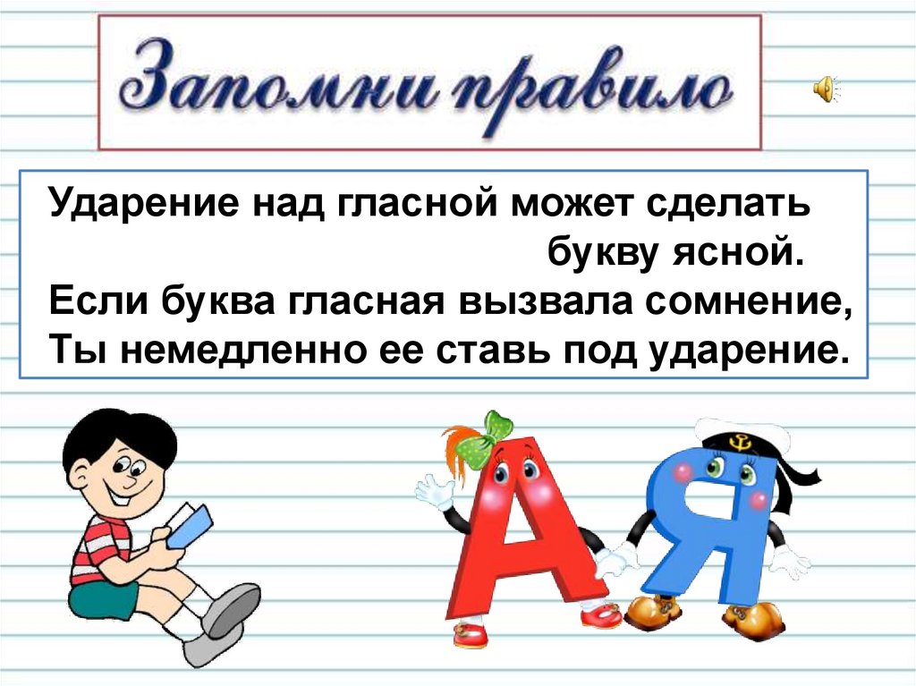 Ударение над гласной может сделатьбукву ясной.