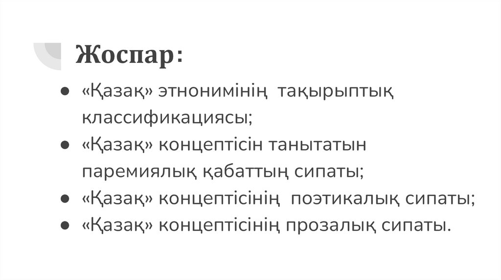 Жоспар:● «Қазақ» этнонимінің тақырыптық