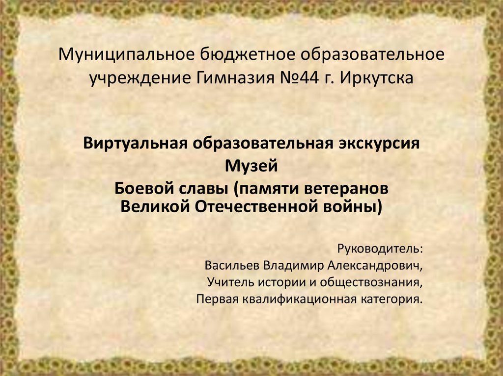 1. Муниципальное бюджетное образовательное учреждение Гимназия №44 г. Иркутска