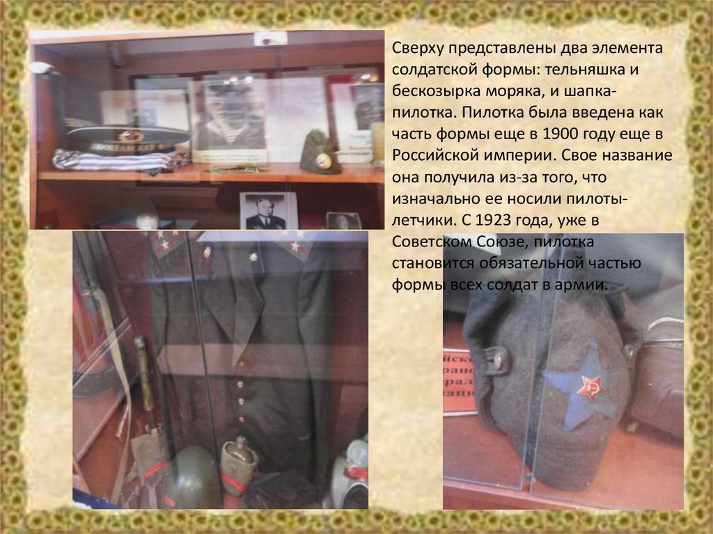 бескозырка моряка, и шапкапилотка. Пилотка была введена как