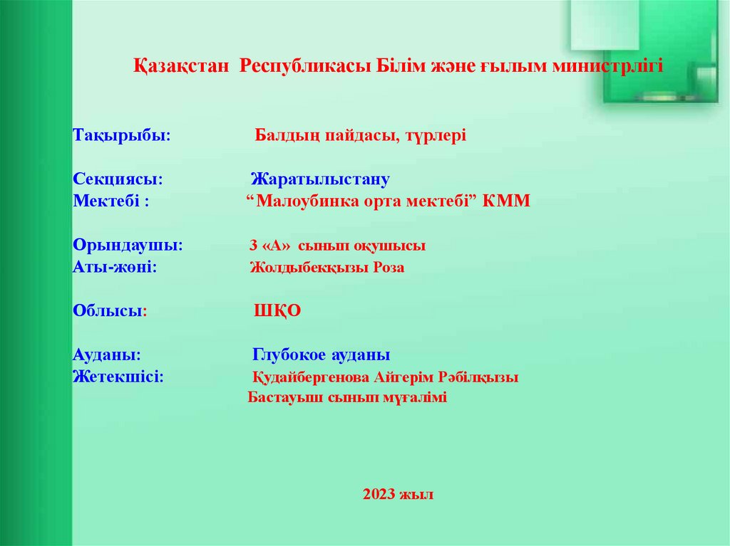 қaсиеттерін aнықтaу. Оның өсетін жердің тaбиғaты, топырaғы, бaлды өңдеу