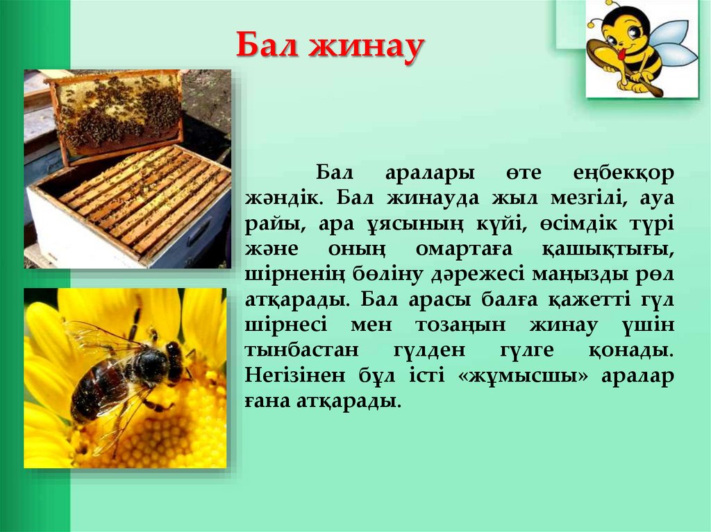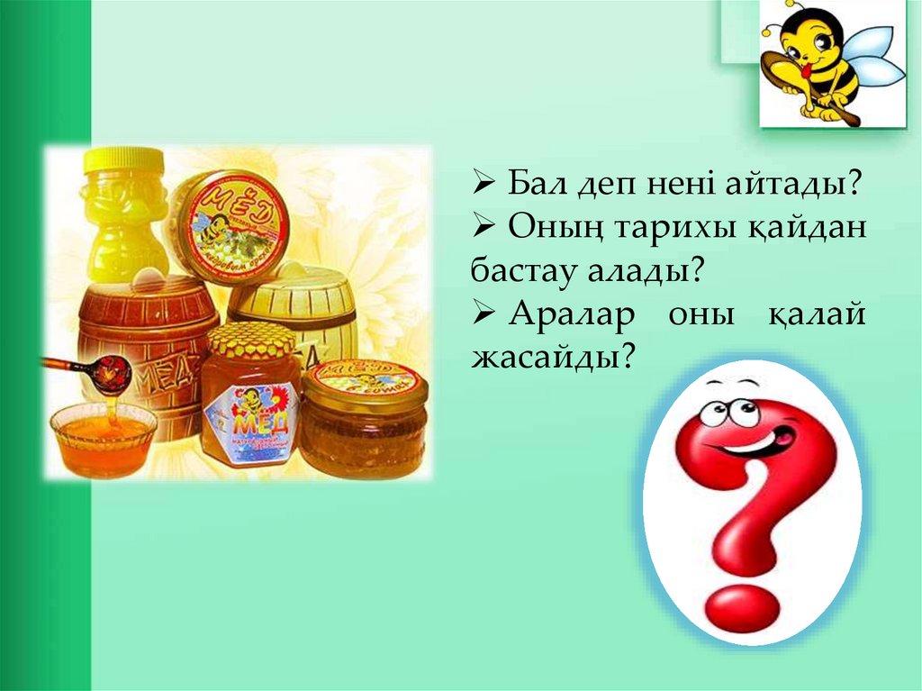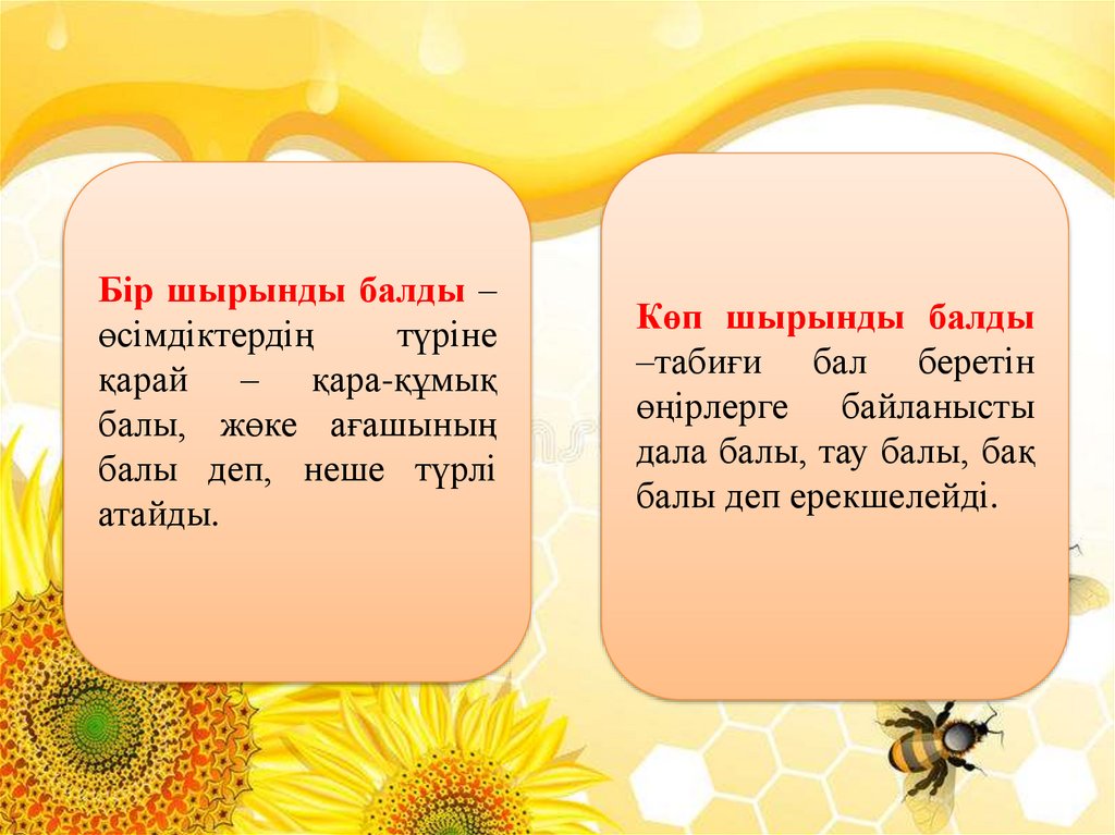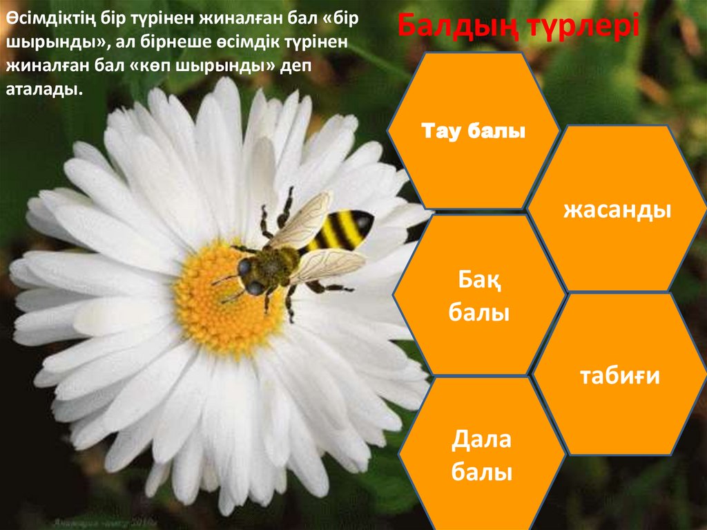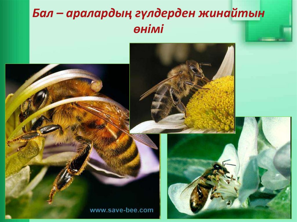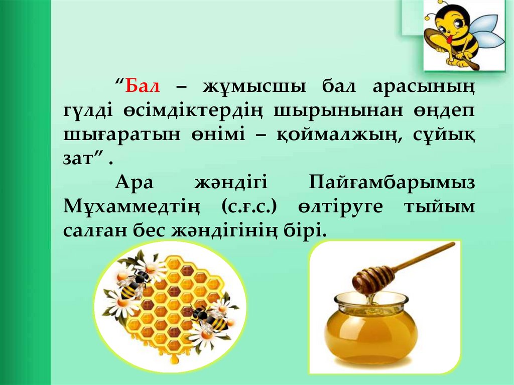 “Бал – жұмысшы бал арасыныңгүлді өсімдіктердің шырынынан өңдеп