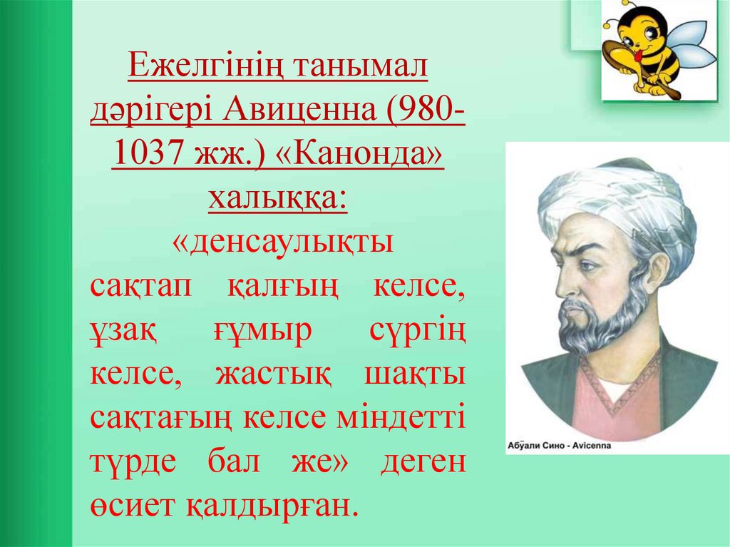 Ежелгінің танымалдәрігері Авиценна (9801037 жж.) «Канонда»