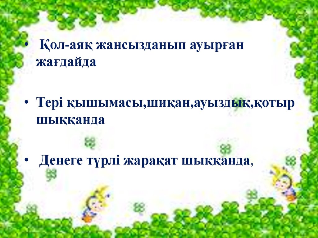 • Қол-аяқ жансызданып ауырғанжағдайда