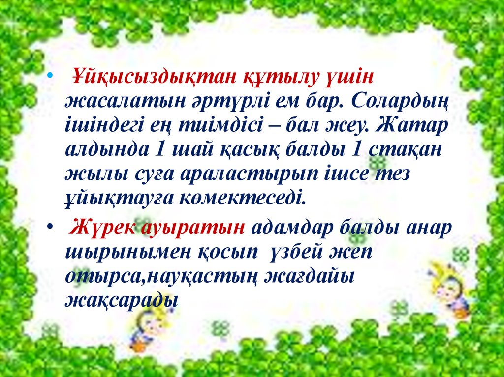 ішіндегі ең тиімдісі – бал жеу. Жатар