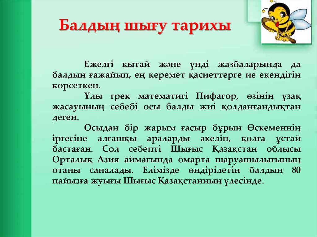 Қорытынды:Балдың өте ертеде алғашқы адамдарға дейін