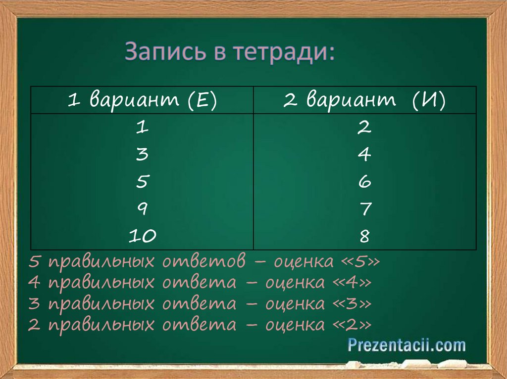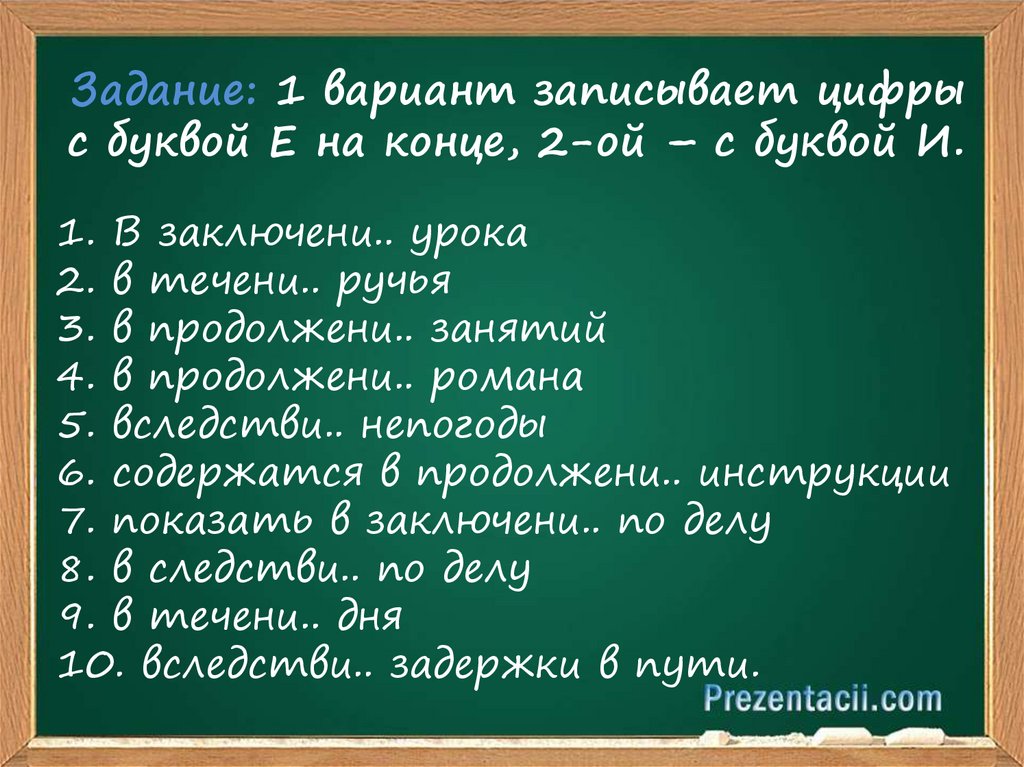 Задание: 1 вариант записывает цифрыс буквой Е на конце, 2-ой – с буквой И.