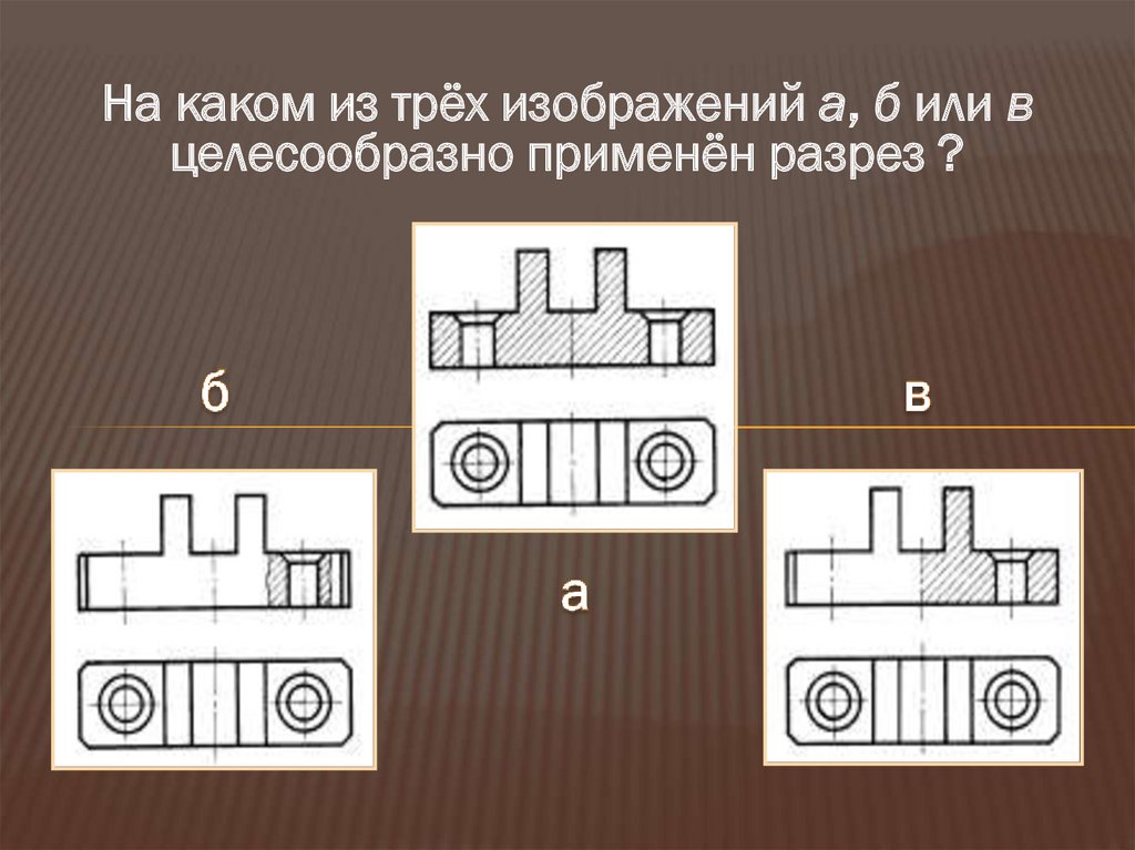 На каком из трёх изображений а, б или вцелесообразно применён разрез ?