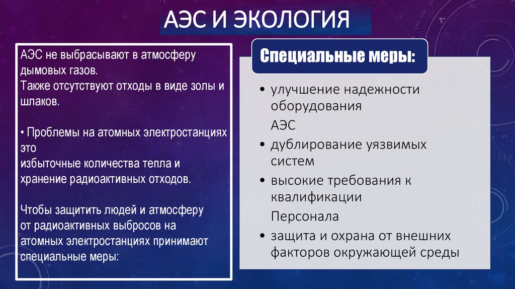 АЭС И ЭКОЛОГИЯАЭС не выбрасывают в атмосферу