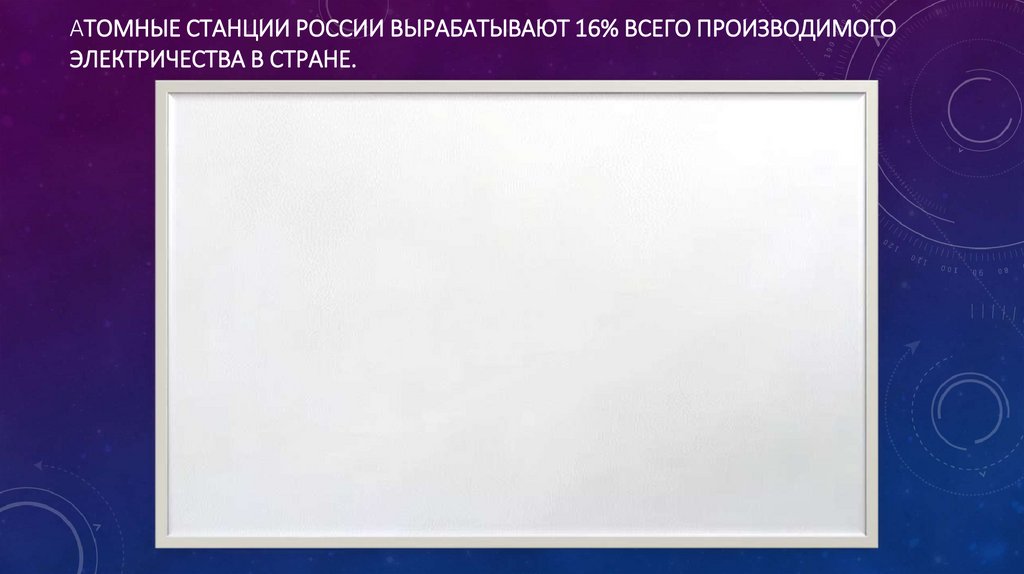 АТОМНЫЕ СТАНЦИИ РОССИИ ВЫРАБАТЫВАЮТ 16% ВСЕГО ПРОИЗВОДИМОГОЭЛЕКТРИЧЕСТВА В СТРАНЕ.