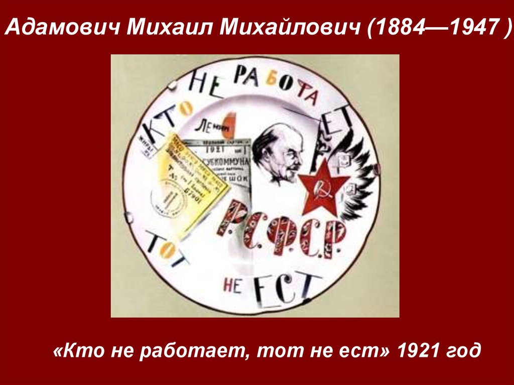 Адамович Михаил Михайлович (1884—1947 )«Кто не работает, тот не ест» 1921 год