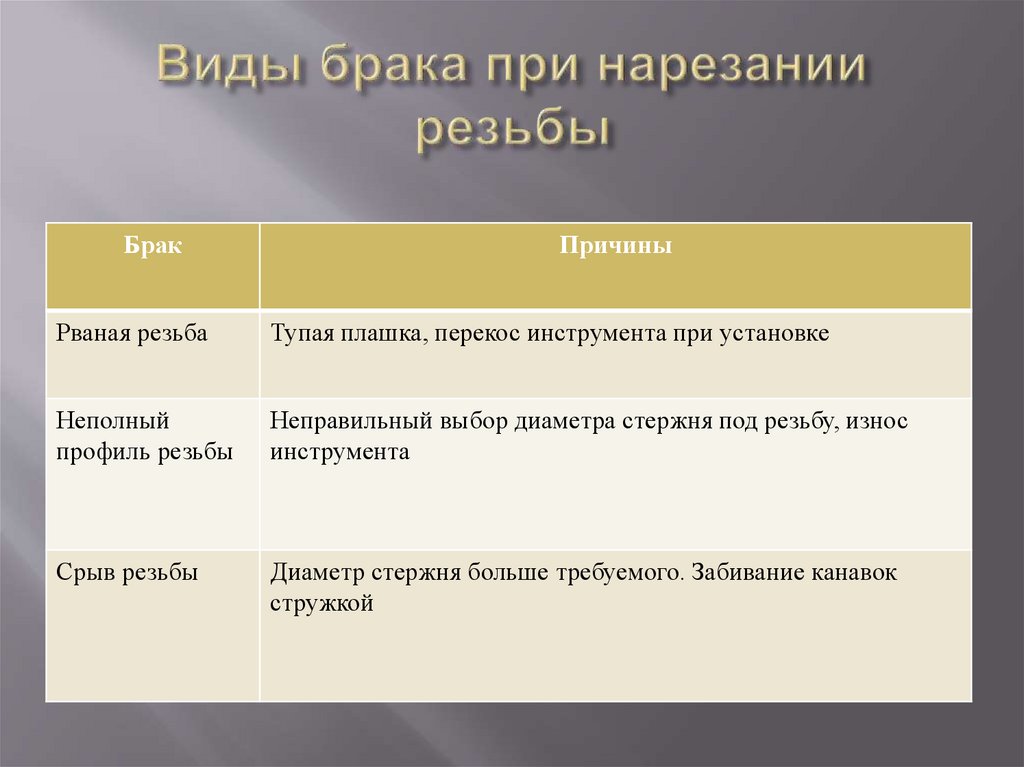 1. По виду нарезаемой поверхности:наружная и внутренняя