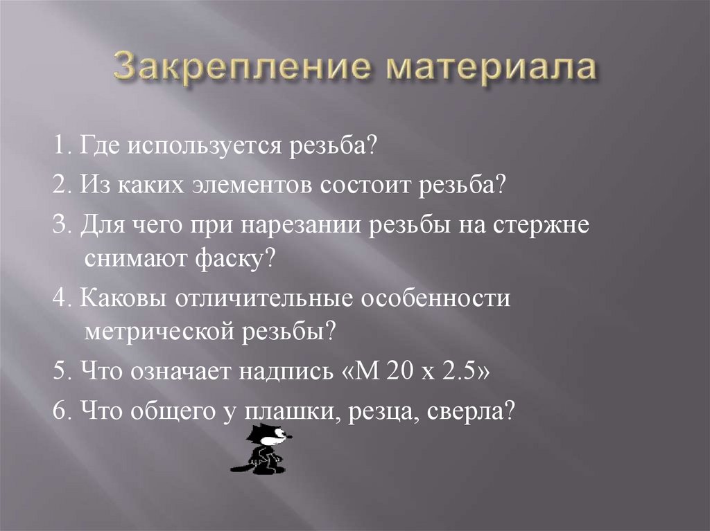 1. Где используется резьба?2. Из каких элементов состоит резьба?