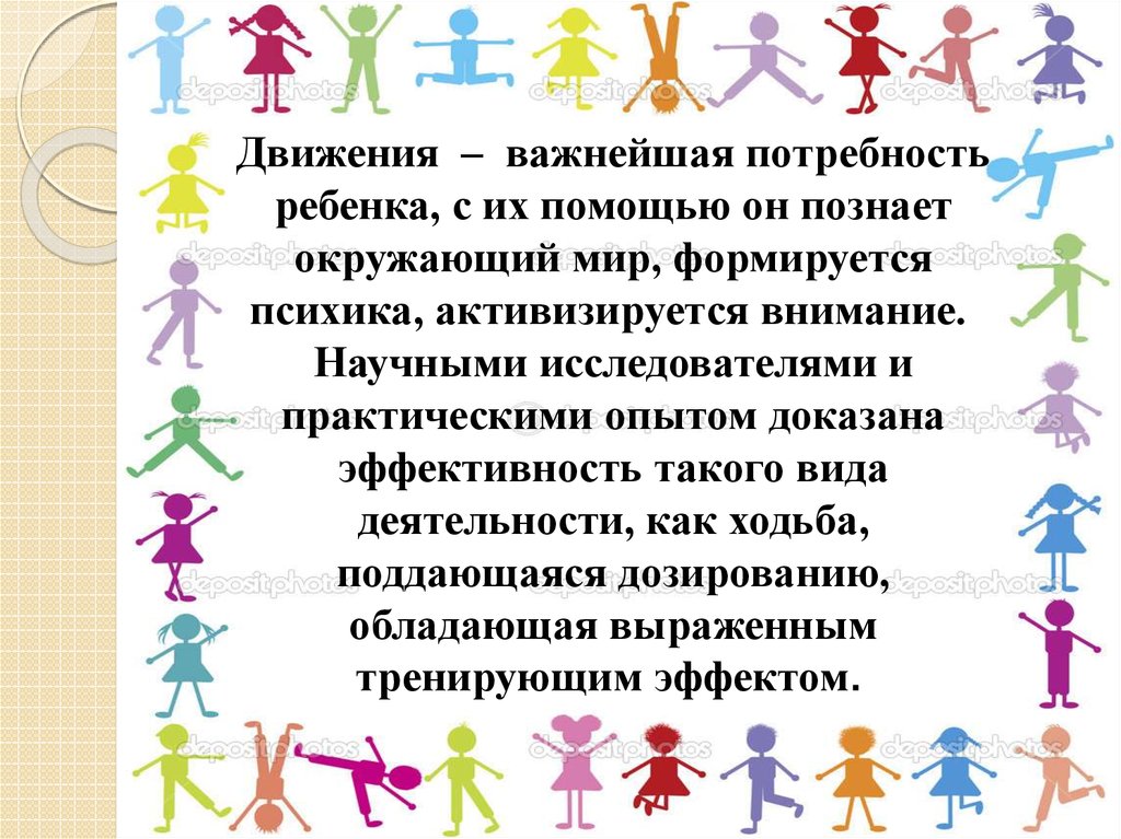 Движения – важнейшая потребностьребенка, с их помощью он познает