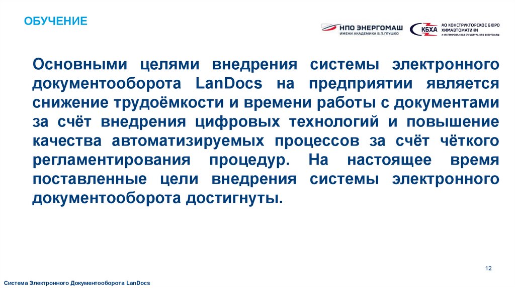 ОБУЧЕНИЕОсновными целями внедрения системы электронного