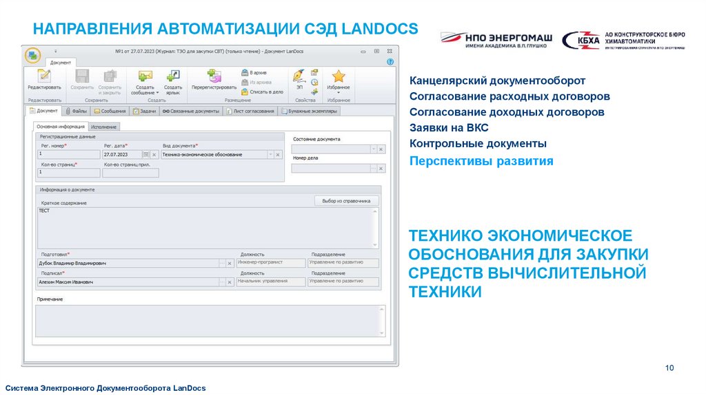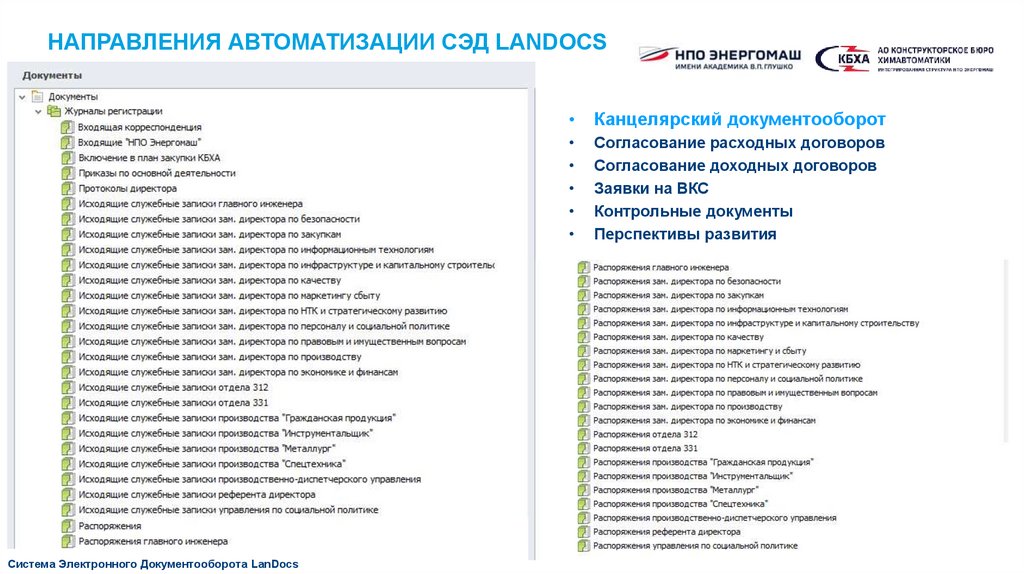 НАПРАВЛЕНИЯ АВТОМАТИЗАЦИИ СЭД LANDOCSКанцелярский документооборот