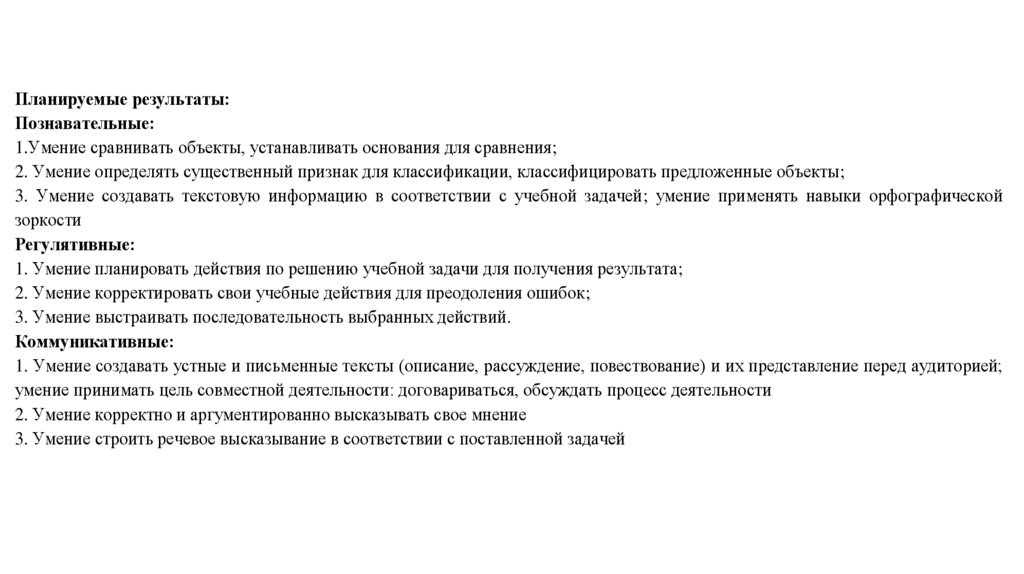 1.Умение сравнивать объекты, устанавливать основания для сравнения;
