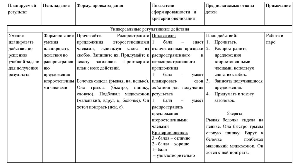 1. Умение планировать действия по решению учебной задачи для получения результата;