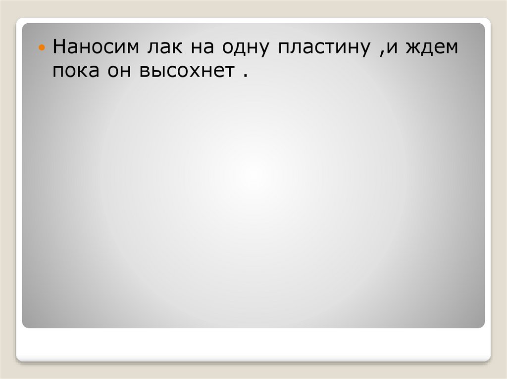 Наносим лак на одну пластину ,и ждемпока он высохнет .