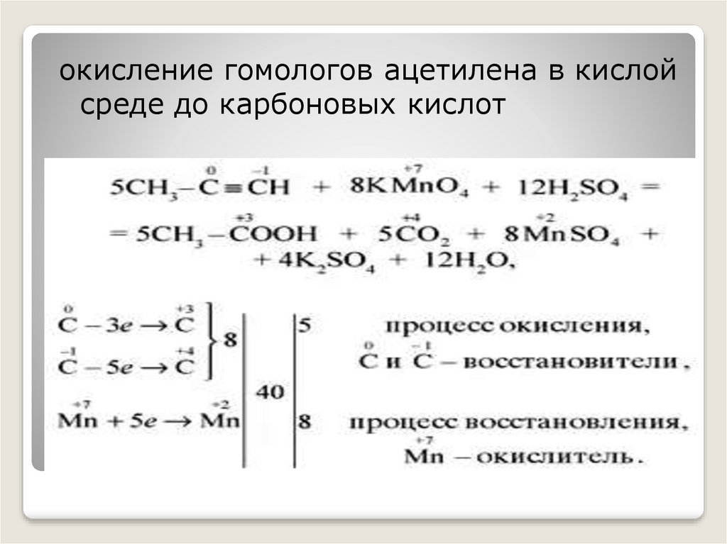 окисление гомологов ацетилена в кислойсреде до карбоновых кислот