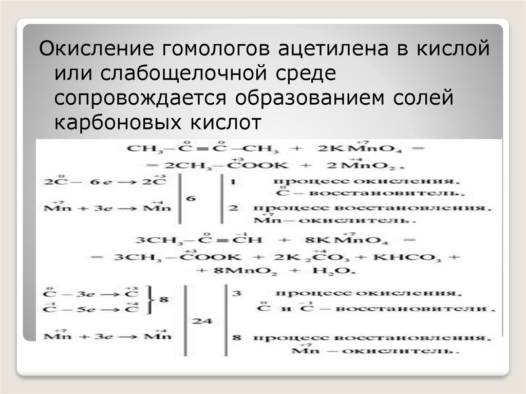 Окисление гомологов ацетилена в кислойили слабощелочной среде