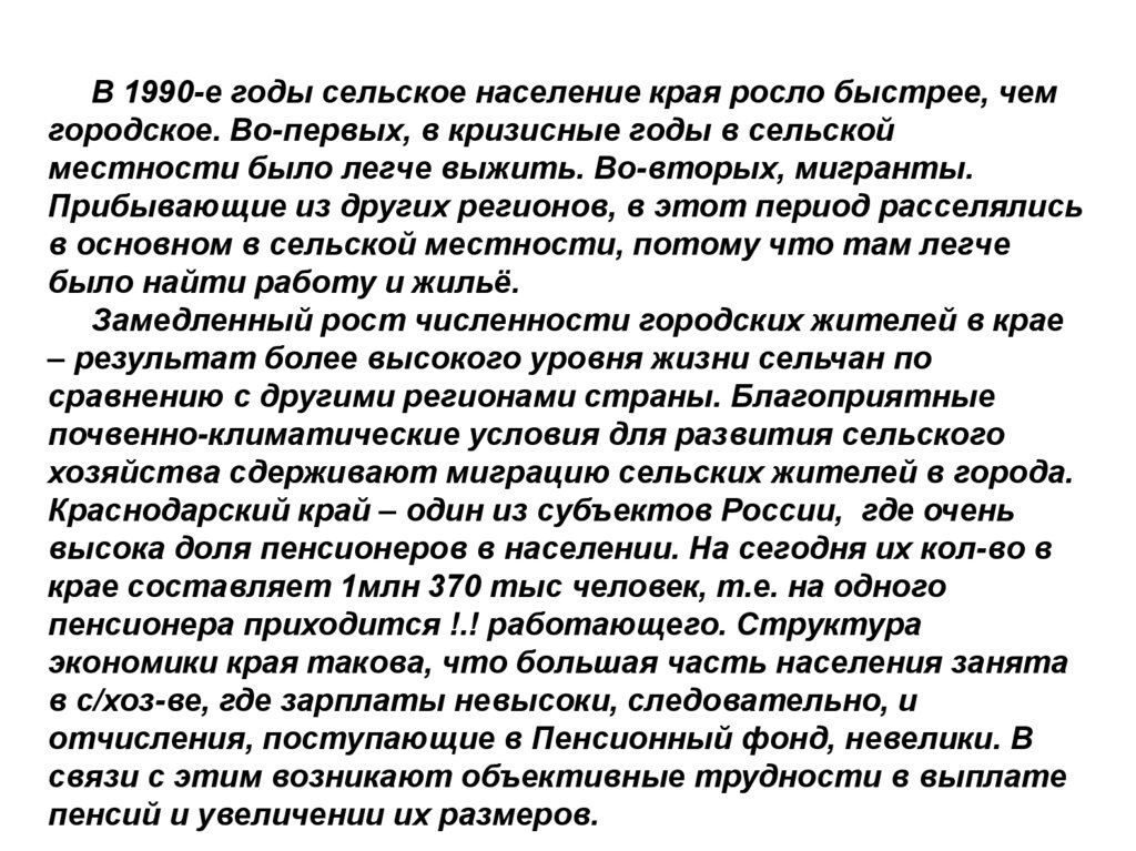 В 1990-е годы сельское население края росло быстрее, чемгородское. Во-первых, в кризисные годы в сельской