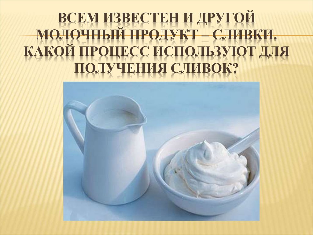 ВСЕМ ИЗВЕСТЕН И ДРУГОЙМОЛОЧНЫЙ ПРОДУКТ – СЛИВКИ.