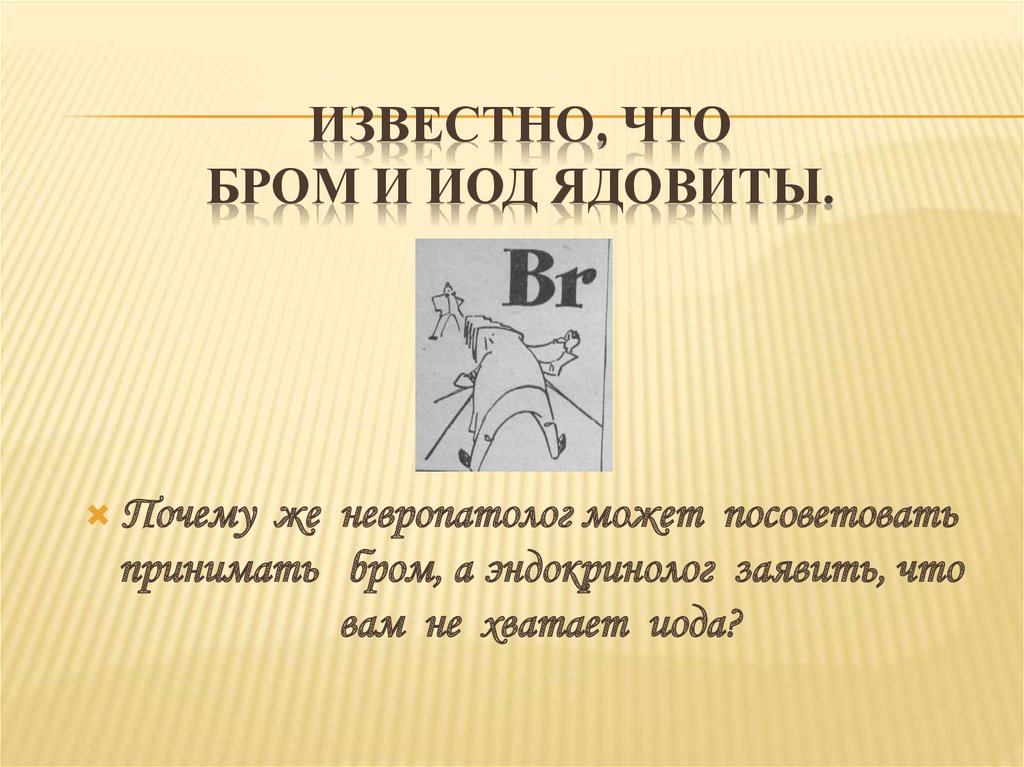 ИЗВЕСТНО, ЧТОБРОМ И ИОД ЯДОВИТЫ.
