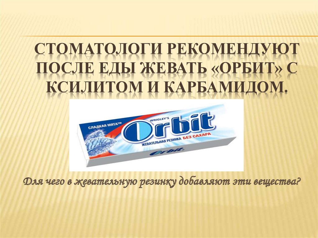 СТОМАТОЛОГИ РЕКОМЕНДУЮТПОСЛЕ ЕДЫ ЖЕВАТЬ «ОРБИТ» С