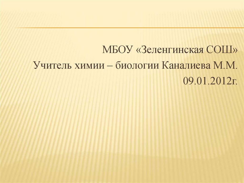 МБОУ «Зеленгинская СОШ»Учитель химии – биологии Каналиева М.М.