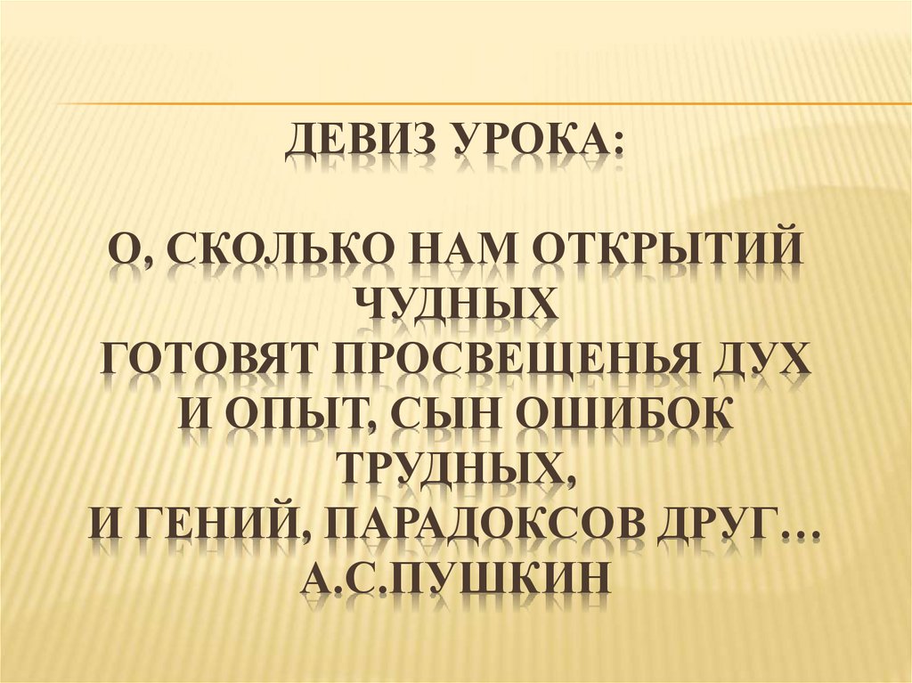 ДЕВИЗ УРОКА:О, СКОЛЬКО НАМ ОТКРЫТИЙ
