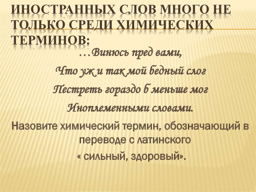 ИНОСТРАННЫХ СЛОВ МНОГО НЕТОЛЬКО СРЕДИ ХИМИЧЕСКИХ