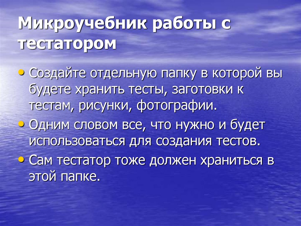 • Создайте отдельную папку в которой выбудете хранить тесты, заготовки к