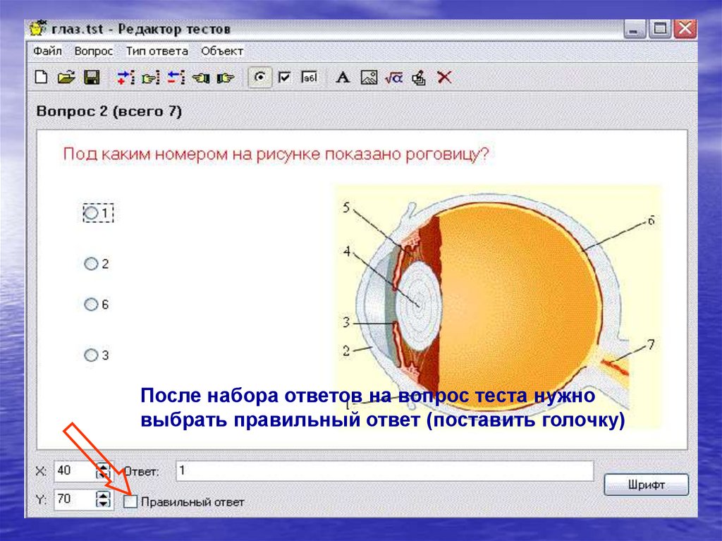 После набора ответов на вопрос теста нужновыбрать правильный ответ (поставить голочку)