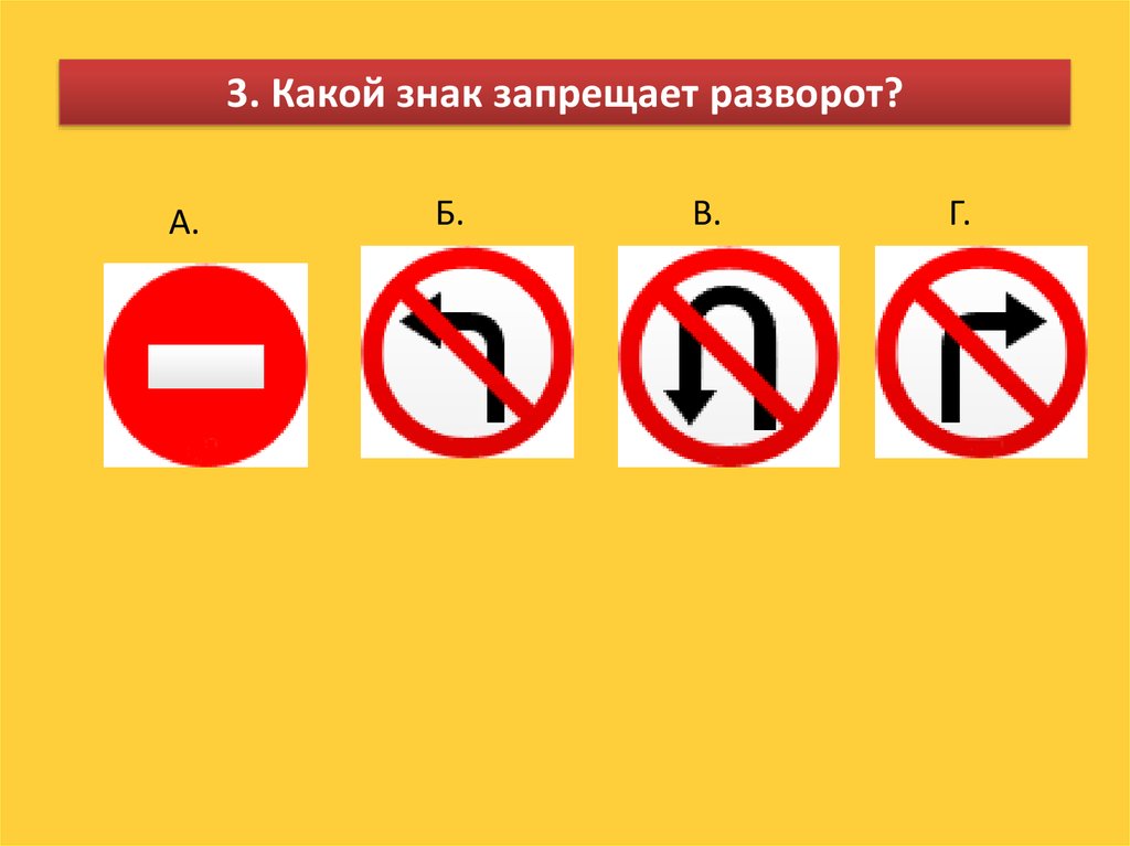 3. Какой знак запрещает разворот?А.