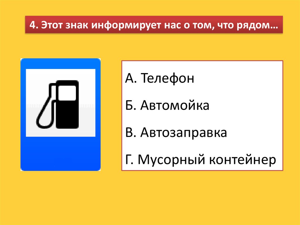 4. Этот знак информирует нас о том, что рядом…А. Телефон