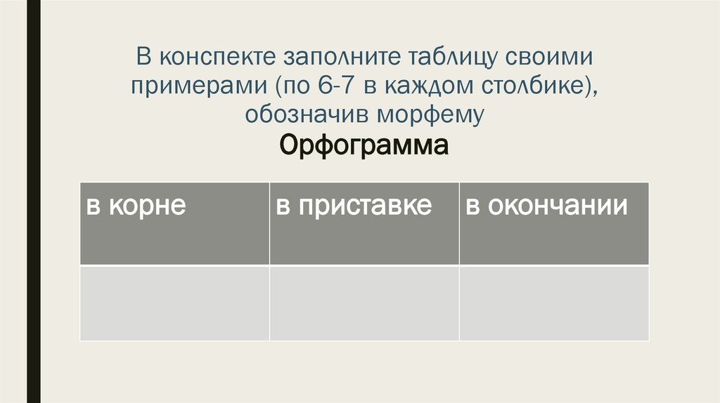 В конспекте заполните таблицу своимипримерами (по 6-7 в каждом столбике),