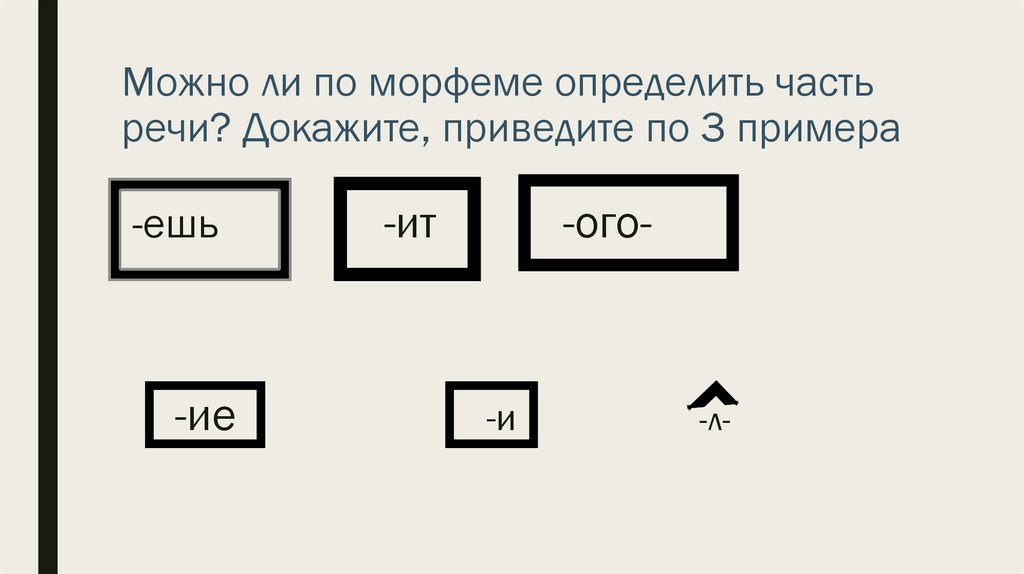 Можно ли по морфеме определить частьречи? Докажите, приведите по 3 примера