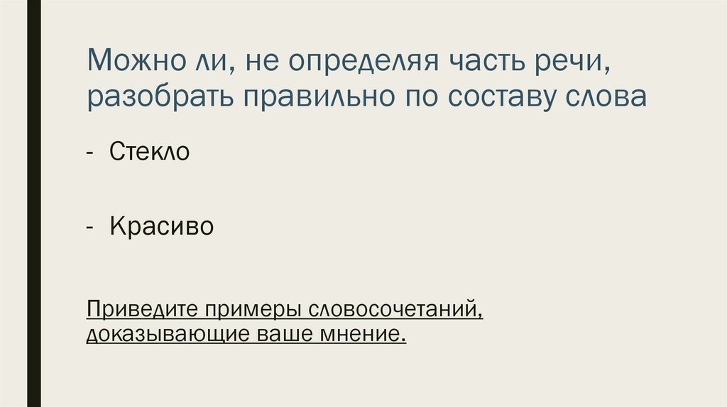 Можно ли, не определяя часть речи,разобрать правильно по составу слова