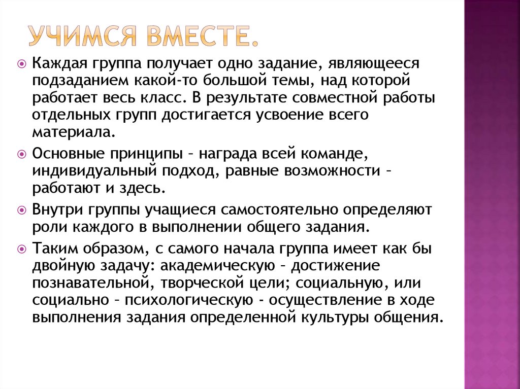 участника группы. Совместная учебнопознавательная, творческая и другая