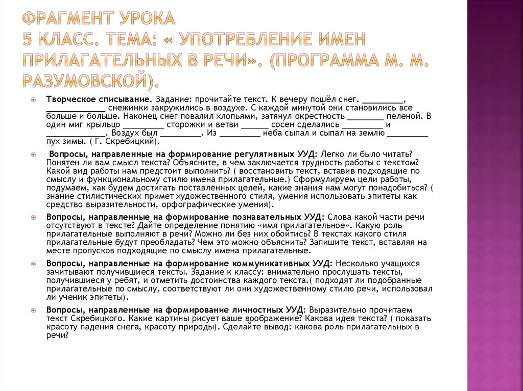 красоту падения снега, красоту природы). Сделайте вывод: какова роль прилагательных в